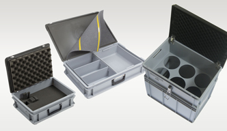 Een versterkte deksel in combinatie met stalen scharnieren maakt E-Line bakken tot een ijzersterk product. Met een op maat gemaakt of standaard schuiminterieur maakt u eenvoudig een veilige beschermkoffer voor uw foto apparatuur, laptop of video camera's.